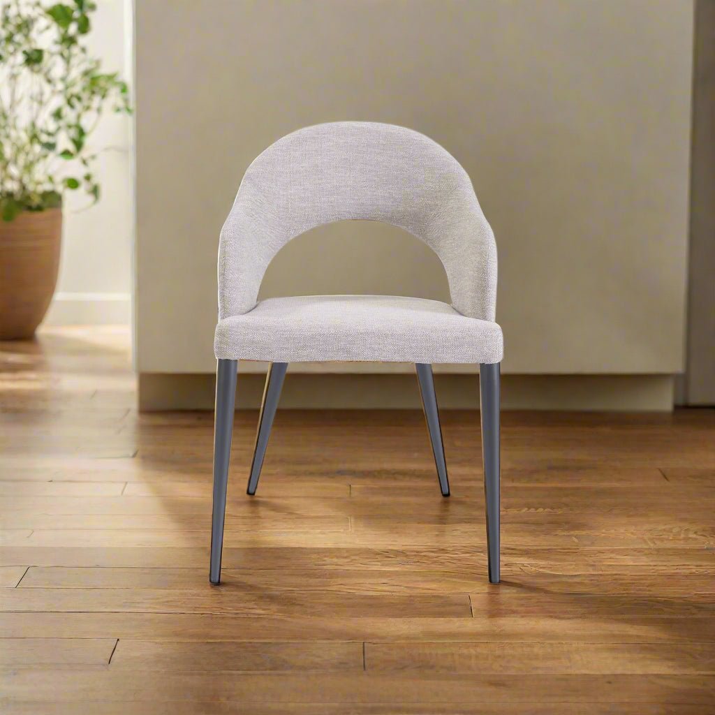 The unique design of the Jiva is sure to modernise any dining space. Dual tone upholstery is complemented by a zigzag stitching and black metal base.